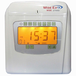 Máy chấm công thẻ giấy WISE EYE WSE-2700A công nghệ in kim in được 6 cột vào ra in được 02 màu đỏ & đen tự động cuốn thẻ vào in và đẩy thẻ lên tự động